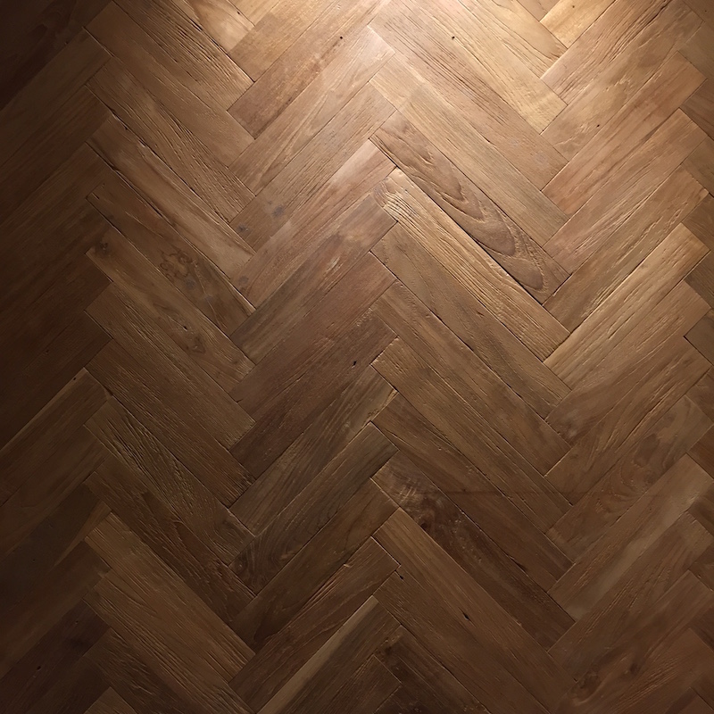 Series of Teak Story recycled teak flooring in classic herringbone patern.